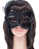 This Black Velvet Masquerade Mask with Beads and Feathers has a gorgeous black rose accented with sequins, ribbons, beads and feathers. Very classy. This half mask style makes eating, drinking and talking easy.