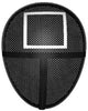 Kill or be killed in this Red Light Green Light Square Half Mask. This mask is inspired by the Netflix hit series and features a black plastic mesh mask with a large white square icon on the forehead. In the series, the workers wearing square icons are the managers, and out of the three shapes, the squares have the most power. They oversee the soldiers and workers.