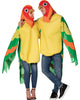 Wear this Love Birds Couples Costume for a fun and vibrant costume with your special someone. The costume includes two tunics in bird body shapes: yellow bellies, draping green long sleeves and feathers in the back. There are two included headpieces in the shape of orange and red bird's heads. When you place the headpieces together they form a heart. Aww!