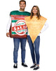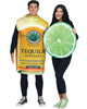 Dress up in this Tequila and Lime Adults Costume for a hilarious couple/friends costume. This costume includes a large tunic printed as a yellow tequila bottle. There is a large white cutout of a green slice of lime with attached adjustable straps to be worn like an apron.