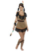 This cute Indian Squaw Womens Costume is sure to get the big chief in a spin! Featuring a suede look dress to the thigh with fringing and braid trim around the neckline and hem. A feather headband one arm cuff and leg ties complete the look.