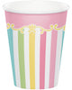 Serve the drinks at your baby shower in these gorgeous Carousel 260ml Cups! This pack includes 8 cups that feature pink and gold detailing at the top and a colourful striped design at the bottom. Match with other products from our Carousel party supplies range for a coordinated look.