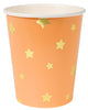 These colourful cups will brighten up your party table. This Jazzy Star 266ml Party Cups Pack of 8 includes the same gold star print on each cup but with different coloured backgrounds such as blue, orange and yellow. Suitable for hot and cold beverages.
