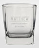 - Round scotch glass with engraved "Dad's Whiskey" text.