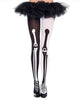 These Skeleton Mismatch Print Pantyhose are perfect for a spooky Halloween or Day of the Dead costume. The tights have one leg white with a black skeleton print and the other black with a white skeleton print.