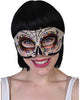 Go for glam and wear this mysterious Mexican Day of the Dead Eye Mask this Halloween. Made from hard moulded plastic with an elastic strap. Match up with our Day of the Dead inspired accessories and costumes.