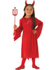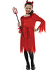 Let your little one unleash her inner mischief-maker wearing our Red Devil Girls Costume. This adorable yet devilish costume features a vibrant red dress with long sleeves, with a sparkling sequin design along the neckline for that extra touch of fiery flair. The jagged edges on the sleeves and hem add a playful twist, perfect for stirring up some innocent trouble. A matching sash ties neatly around the waist. And to top it all off, the headband with fibre filled horns ensures the cutest little devil in disguise. Complete the look further with a pitchfork prop and other accessories from our Devils range.
