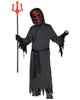 Ignite the fear in our Fire Devil Boys Costume. This terrifying outfit features a top emblazoned with a fiery ribcage and skeletal body, creating a scorching look. The tattered hem and cuffs add a touch of chaos, perfect for a devilish appearance. The included mask, ablaze with oranges and reds, captures the essence of a fearsome devil, complete with sinister details that will make you the most frightening figure in the flames. Unleash your inner inferno with this scorching scary costume.