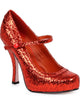 - Stunning red glittery dress with flame detailing on the asymmetrical hem.