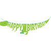 For a roaring successful dinosaur themed party banner, you can't go wrong with adding this Roar Happy Birthday Bunting. This bunting comes in a metallic green and reads 'Happy Birthday' with a dinosaur head at the front, a tail at the back and two legs attached to the 'B' and 'I'. As you hang this bunting up, pair it with our other Roar or other dinosaur party decor.