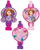 Our range of Sofia the First party tableware and accessories is all about party fun! Sofia is the little girl, a commoner, until her mum marries the king and then she's suddenly royalty! From the animated Disney TV show. Let them cause a riot with these pretty pack of 8 Sofia the First Blowers, perfect for popping into the goodie bags if you prefer a little quiet!