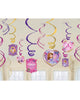 Our range of Sofia the First party tableware and accessories is all about party fun! Sofia is the little girl, a commoner, until her mum marries the king and then she's suddenly royalty! From the animated Disney TV show. Decorate with this Sofia the First Swirl Decoration Pack containing 12 swirls, three with 7" paper cutouts, three with 5" cutouts and six plain swirls without cutouts.
