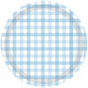 Gingham 17cm Paper Plate Pastel Blue Pack of 8