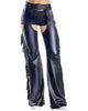 Whether you're channeling a rockstar or chic cowgirl, these Black Chaps offer a bold, edgy look with a hint of shine. These chaps feature striking fringe detailing on the sides, adding dynamic movement to your every step. Designed with a glitter belt and bold stud accents, they bring a rock-inspired flair to any outfit. Perfect for concerts, festivals, or adding a daring touch to your casual or themed wear. Pair with a faux-leather bralette for a complete western-inspired ensemble.
