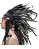 Stand out and make a statement at your next Cowboys and Indians-themed party with this Black Feather Native American Headdress. The large black feathers with a greenish hue make it a perfect accessory for any native look but with a dark twist. The beaded front piece features a criss-cross pattern and black feather side pieces to add just the right amount of authenticity to your outfit. Perfect for Native American themed outfits, western themed parties or festival looks.