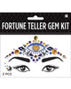 Why wear a flower garland on your head when you can add it to your eye makeup with this Flower Child Face Jewels. The distinct accessory features a pack of large gems which make up the shapes of a blue, dark pink and purple flowers and surrounding the flowers are small scatterings silver and blue gems. Great for festival or 60s costumes, these gemstones features adhesive and are attached to a clear film for easy application around your face. The gemstones are reusable, just apply eyelash glue or spirit gum to ensure application.