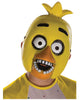 Disguise yourself as your favourite creepy animatronic character with this Five Nights At Freddys Chica Adults Half Mask. This yellow mask features wide, scary eyes and an open beak revealing a white set of chompers.