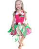 Become a fairy princess with our Enchanted Fairy Rainbow Dress Girls Costume. Featuring a rainbow dress with a sparkling rainbow tutu styled with a hot pink bodice, and flowers across the neckline and waist.