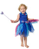 Your daughter will be guaranteed to love this Pixie Fairy Royal Blue Dress Girls Costume. The dress has a royal blue sleeveless tunic with an attached blue, purple and pink glimmering organza skirt. The dress also has pink 3D flowers along the waist and neckline as well as attached material wings.