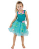 Your little one will look like a faraway fairy princess with our Faraway Fairy Turquoise Dress Girls Costume. Featuring a turquoise blue girls' dress with an assortment of flowers around the neckline and the waist. The tutu is styled with leafy green stems and light pink flowers, overlayed with light blue tule material. Great for your daughter's book week costume!