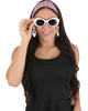 Channel your inner flower child with the 1960s Hippie Headband Pendant and Glasses Set. This groovy set features a black headband boldly emblazoned with "PEACE" and a matching peace sign, perfect for spreading good vibes. A silver necklace with a large peace pendant and finish the look with round, pink-tinted sunglasses that scream retro cool. It’s the perfect set to bring peace, love, and grooviness to any 60s-themed party or festival.