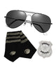 Bring an air of mystery and a touch of cool with these Silver Mirror Aviator Sunglasses. Featuring sleek silver frames and black mirror tinted lenses, these costume aviators are perfect for channeling your inner pilot or pulling off that classic police officer vibe. Whether you're flying high or keeping the peace, these shades will have you ready for duty. Complete your uniform outfit with accessories from our police, pilot or other uniform ranges.
