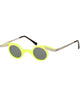 - Silver frame aviator sunglasses with yellow-tinted lenses.