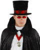 Sink your teeth into this unique Vampire Hat Glasses and Amulet Kit. The kit is complete with a black top hat embellished with a red ornate sash, sleek red lens vampire glasses, and an intricate silver amulet with a matching red ornate strap. The perfect accessory kit to complete your vampire costume.