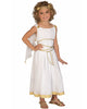 Go for the Helen of Troy look in this Grecian Goddess Girls Costume featuring a white dress with gold-trimmed hem, capelet sleeves, and gold braid belt. A matching gold and medallion headband completes the look. Great for Book Week, parties and dress up
