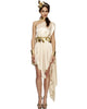 This Grecian Goddess Womens Costume will help bring out your inner goddess. This otherworldly costume features a white pleated mini dress with a gold halter harness and gold trim on one hem. There is a pair of gold wrist cuffs, a gold leaf headband and a gold embellished belt. Complete this goddess costume further with accessories from our Greek and Roman range.