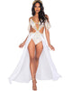Have you got an era costume party coming up and stuck for the base of your costume? Then start with this Ivory Gauze Dress Womens Costume. Perfect for a medieval or pirate costume. This gorgeous dress comes in ivory and features cold shoulder bell sleeves and a sweetheart neckline with a curve hugging bodice and flowing scarf skirt. Pair up with some wings and halo and transform yourself into a stunning angel or why not wear it with a pair of boots, sword and a pirate hat and you'll become the sassiest wench across the high seas.