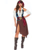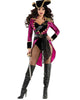 Dress as the sexy Pirate this Halloween with our Sexy Swashbuckler Womens Costume. Featuring a black velvet romper with an attached purple taffeta jacket, with gold front buttons, gold-fringed shoulder epaulets, long sleeves and black cuffs with gold stitching. The costume comes complete with a black sequin sash, faux leather belt and a black pirate hat with a gold hat trim. Just finish your costume with fishnet stockings, sword and boots.