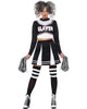Lead the cheers from the dark side in the Gothic Slayer Cheerleader Womens Costume. This killer uniform features a long-sleeved, black and white crop top with the word 'Slayer' printed in a bold white font across the chest, perfectly paired with a matching black and white pleated skirt. The included black and white pom-poms are ready for you to perform a deathly cheer routine. To perfect your gothic pep rally look, add some fishnet stockings, heavy black boots, and some dark, dramatic makeup. It's the perfect choice for a unique Halloween costume, a pop-culture-themed party, or for showing some deadly spirit at any spooky event.