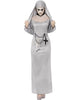 Listen out for the screams when partygoers encounter you wearing our Grey Gothic Nun Womens Costume. This haunting costume features a long-sleeve grey knit dress with a lace insert at the neckline, accented by a black collar for a darkly divine touch. There is an attached grey belt that comes complete with black rosary beads and a cross. Topped off with a grey nun headpiece, this look is perfect for those seeking a spooky, gothic twist on traditional attire. Complete the look with eerie makeup and other nun accessories from our Halloween range.