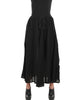 - The front of the dress is a black vest design and sits below the bust. Is decorated with gold edging and decorative buttons.