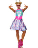Why be good when it is so much fun to be bad. Bring out your bad self this Halloween with this Harley Quinn Womens Costume. This costume features a skin-tight dress, arm cuffs and a matching headband. Thigh highs and eye mask complete the look. Great couple costume when paired with the Joker.