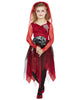Let her embrace the elegance of the night in this Gothic Lady Girls Costume. This stunning costume features a long, black hooded dress with dramatic bell cuff sleeves, both of which reveal a striking red lining for a touch of vampiric flair. A rich red panel runs down the centre-front of the dress, while a classic black lace-up detail across the waist creates a beautiful, corseted silhouette. To complete her mysterious transformation, pair this gown with some dark boots, elegant gothic jewellery, and perhaps some dramatic, smoky eye makeup. It's the perfect choice for a sophisticated Halloween look, a vampire-themed party, or for becoming the mysterious lady of a haunted manor.
