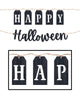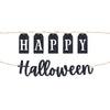 String up these Halloween Classic Black and White MDF Banner Pack of 2 across any wall, doorway, or window. The pack comes with two banners on twine: one with black tag-shaped MDF boards with one letter of the word "Happy" printed on each, and another banner with the word "Halloween" cut out in cursive on MDF. Combine with our range of Halloween Classic black and white party supplies including party cups, party plates, tablecovers and more.