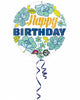 Happy Birthday Blue Sparkly Floral Foil Balloon