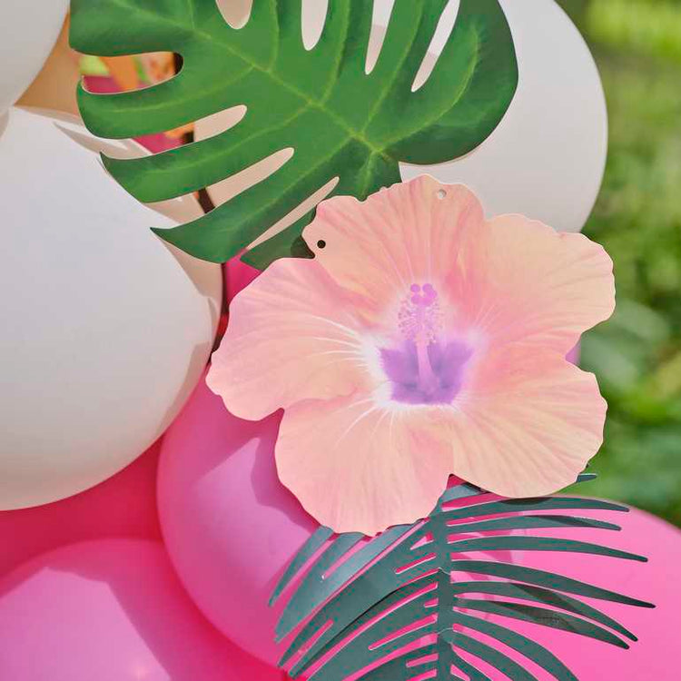 Tiki Tropics Hawaiian Tiki Balloon Arch with Tropical Flowers & Foliage