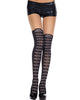 Shopping for Halloween? We have a great range of Halloween stockings, Halloween leggings and Halloween socks to match your costumes that'll make you saunter into your Halloween party with confidence. For those dressed as a wicked witch, grab a pair of striped Halloween stockings to complete your costume. If a house is going to drop down on you, you'd better have your legs looking the part...right? For more Halloween ideas, check out our range of Halloween leggings including studded, wet-look and distressed styles to complete your dark, gothic look. If you've chosen to dress up as a skeleton for Halloween, save time by buying a pair of black opaque stockings featuring white bones printed on them. Who has time to paint themselves anyway? We also have a fun range of tights for women that suit your Day of the Dead costumes with sheer stockings featuring sugar skull prints or bones with flowers. Shop zombie Halloween socks that have red blood splatters or green toxic chemical splatters or mismatching over the knee socks and stockings for your Jester and Harley Quinn costumes. No matter what style of Halloween costume you've decided on for your Halloween celebrations, we have a pair of Halloween hosiery to suit you! Shop CostumeBox to find all styles of hosiery available to complete your costume this Halloween.