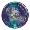 This Halloween impress with our range of Midnight Mayhem party supplies starting with our Midnight Mayhem 17cm Iridescent Plate Pack of 8. The party supply is design with a skull and a coiled viper emblem on a psychedelic purple and blue background! Great for serving appetizers at your Halloween party.