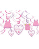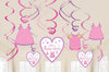 Shower your family and friends with love when decorating your Baby Shower with the Shower With Love Girl Swirl Value Pack of 12. The hanging decoration pack includes 6 Pink and purple swirl decorations and an additional 6 swirl decorations with plastic cut outs that announce 'It's a Baby Girl!' and the 3 others are in the shape of baby pink onesies. Just hang from the ceiling and you have yourself an awesome baby shower decoration easy as that! Check out our Shower with love party supply range to complete the look.