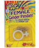 Add this Female Gender Pendant to your hippie, 60's or 70's costume. This gender symbol denoting female is derived from astrological symbols, denoting the planet Venus. The symbol is white with a silver chain.