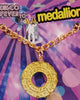 Boogie the night away with this gold Disco Fever Medallion Necklace! This necklace is made from plastic and features a medallion-style pendant that's the perfect accessory to complete your disco outfit. Just slip it over your head and you're ready. Make sure you accessories well so you sparkle under the disco ball while you spin to Boogie Wonderland!