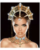 Rule the land with this dazzling Queen Of The Night Collar. This beautiful gold collar features a web-like design with silver rhinestone panelled detail and 3 large silver jewels at the front. Perfect for a fairy, goddess or egyptian costume.