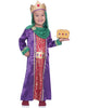 Shower the baby Jesus with gifts as one of the Three Wise Men in this Red Nativity Wise Man Boys Christmas Costume. The costume features red and blue robe with gold trimming and foil-printed star and camel patterns, as well as an attached gold collar. A metallic crown and gift box made from cardstock is also included to complete the look. Perfect for kids to wear at Christmas time for any Christmas parties or nativity plays.