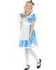 This Classic Alice Womens Costume is an elegant option for your next dress up party. This costume features a dress and bow headband. The blue dress has an attached white apron that ties in a large bow at the back. The skirt has a delicate tulle overlay. Just toss on a pair of shoes and you'll be ready for an adventure.