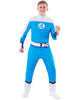 Step into the shoes of the fiery Human Torch with this Marvel Fantastic Four Human Torch Mens Costume. This striking ensemble features a blue all-in-one jumpsuit adorned with the iconic '4' logo and a digitally printed belt, capturing the essence of the Marvel superhero. The high collar and detailed sleeves add a touch of authenticity, making it perfect for cosplay events or Marvel themed parties. Pair it with flame-inspired accessories to complete the look.
