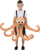 This Ride in Octopus Kids Costume is a great costume idea for your child's next animal fancy dress party, under the sea party or even for a curious creature at the Book Week parade. The costume is a plush octopus in seafoam orange with large cartoon eyes, a small smile and floral bow tie, as well as white pom pom trimming down each of the eight tentacles. To wear the costume, simply step inside, lift it up and place the attached straps over the shoulders to hold the octopus in position around the waist so it looks like your child is riding the octopus.